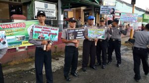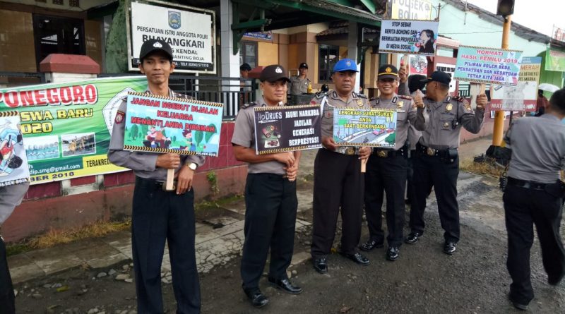 Polres Kendal – Kapolsek Boja Polres Kendal AKP Ibnu Suka bersama anggotanya mempunyai cara unik tersendiri dalam mengisi kegiatan pada sore hari waktu menjelang buka puasa. Selain membagi takjil untuk masyarakat yang masih berada dijalan, Sabtu (11/5/2019) para personel Polsek Boja berjajar-jajar di Jalan Raya Semarang – Boja sambil membawa poster-poster yang bertuliskan pesan kamtibmas dan himbauan keselamatan berlalu lintas.