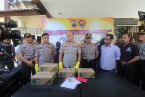 Polres Kendal – Polres Kendal bersama jajaran Polsek Boja menangkap kawanan pencuri yang beraksi di Kantor PT Trisumber Lintas Nusantara (TLN). Kawanan yang terdiri dari 4 pelaku ini menggasak hingga 19 ribu kardus berisi minuman teh kemasan senilai kurang lebih Rp. 350.000.000,- ( tiga ratus lima puluh juta rupiah ).