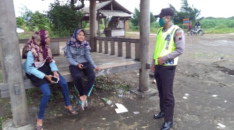 Polres Kendal – Petugas patroli Polsek Kangkung Polres Kendal meminta sejumlah remaja yang sedang berkunjung di Pantai Indah Kemangi di Desa Jungsemi Kecamatan Kangkung Kabupaten Kendal untuk segera pulang, Sabtu (9/5/2020). Hal ini sebagai langkah untuk meminimalisir dan mencegah penyebaran virus covid-19.