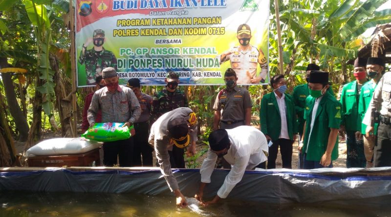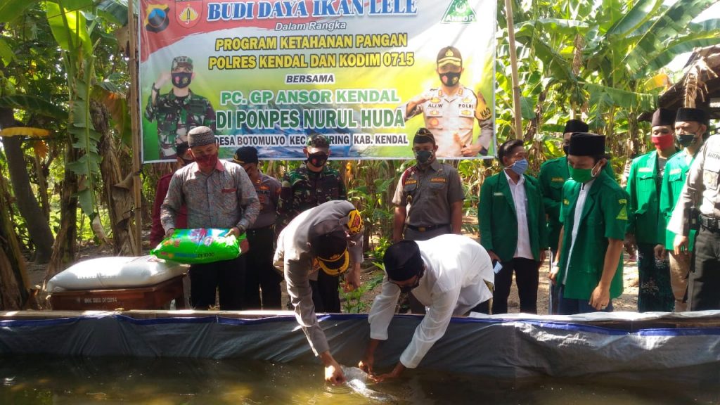 Bantuan sebanyak 5.000 bibit lele tersebut diserahkan langsung oleh Kapolres Kendal AKBP Ali Wardana, S.H., S.I.K., M.M. bersama Dandim 0715 Kendal Letkol Inf. Iman Widhiarto di Pondok Pesantren Nurul Huda Desa Botomulyo Kecamatan Cepiring Kabupaten Kendal, Rabu (19/8/2020). Diharapkan dengan menggandeng Gerakan Pemuda Ansor Kendal, melalui program pemberdayaan ekonomi bisa membantu organisasi dimasa pandemi Covid-19.
