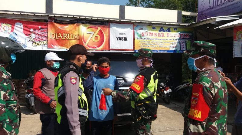 Polsek Plantungan dan Babinsa Bagikan Masker Untuk Warga di Sekitaran Pasar Wonodadi