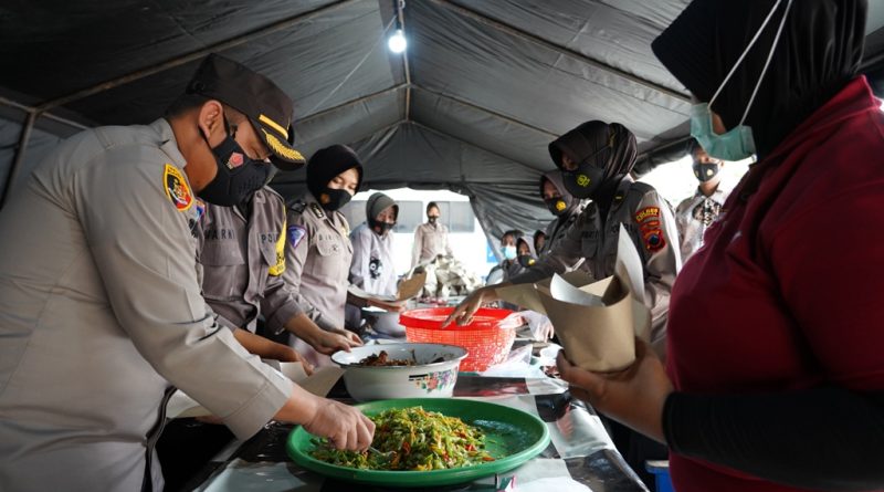 Polres Kendal – Tribratanews.jateng.polri.go.id | Sebagai bentuk kepedulian dari Polri terhadap warga yang terdampak musibah bencana alam, Polres Kendal mendirikan Dapur Umum Siaga Bencana Tahun 2021 di halaman Mapolres Kendal, Senin (9/2/2021). Dapur ini didirikan untuk membantu mensuplai logistik berupa makanan bagi warga Kendal yang terdampak banjir. Adapun kondisi banjir yang terjadi di Kabupaten Kendal merendam hingga 70 desa di 12 Kecamatan .