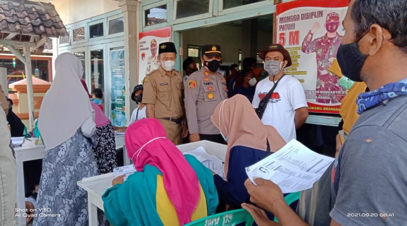 Setiap hari Kapolsek Brangsong bersama anggotanya meninjau pelaksanaan vaksinasi di lokasi-lokasi yang telah ditunjuk oleh Dinas Kesehatan seperti yang terjadi pada hari Kamis, 23 September 2021.