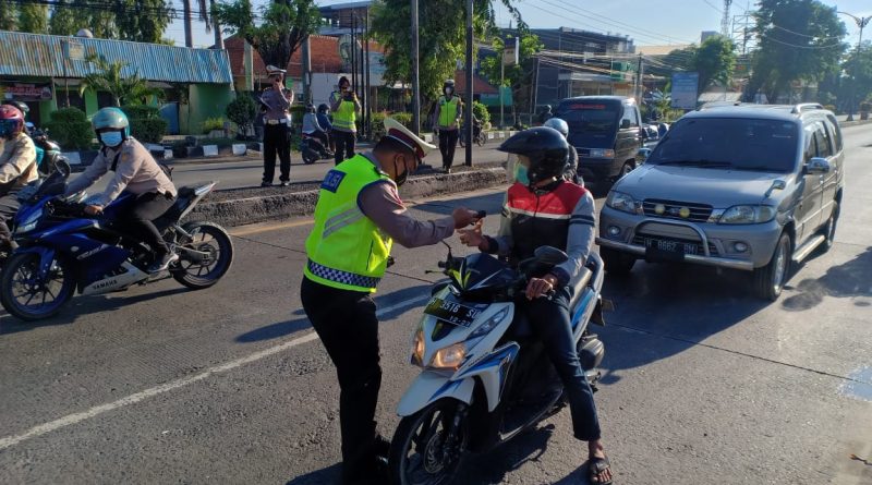 Kepada pengguna jalan yang melintas di jalan Pertigaan lampu merah Purin petugas mengajak agar selalu tertib dalam berkendara, selain tertib berlalu lintas setiap warga harus disiplin menerapkan protokol kesehatan untuk antisipasi penyebaran Covid-19.