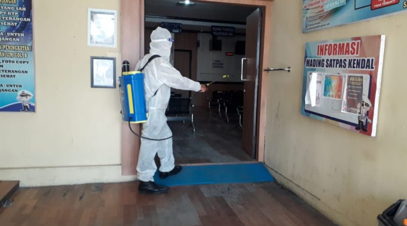 Cegah Penyebaran Virus Covid 19 Sat Lantas Polres Kendal Lakukan Penyemprotan Disinfektan Di Ruang Pelayanan
