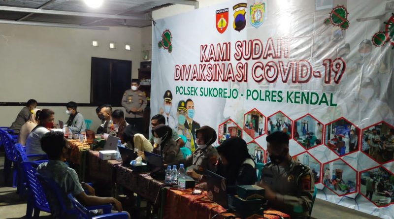 Jajaran Polres Kendal Terus Gencarkan Vaksinasi Malam di Sukorejo