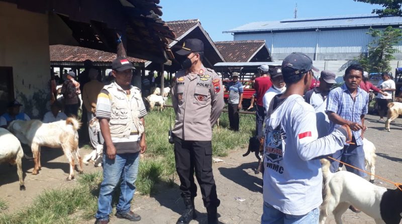 Kapolsek Cepiring AKP Agung Setio Nugroho memantau penjualan hewan di Pasar Hewan Gondang Cepiring Jumat 08 juli 2022.