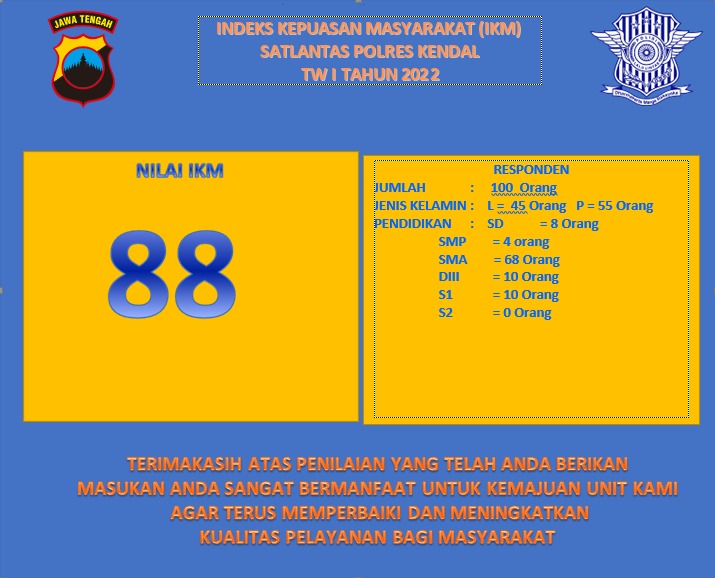 Rekap Indeks Kepuasan Masyarakat IKM TW I Pelayanan Satpas Kendal TH 2022