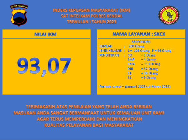 Dokumen Fasilitas SURVEY KEPUASAN MASYARAKAT (SKM) SKCK TW I 2023 15 Juni 2023 Polres Kendal 0 Komentar polres kendal, sat intelkam, SKCK