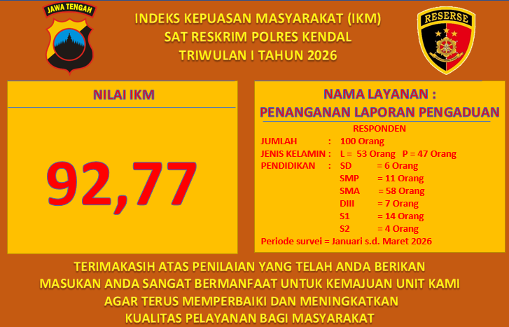 Dokumen FAQ SAT RESKRIM Fasilitas SURVEY KEPUASAN MASYARAKAT (SKM) SAT RESKRIM POLRES KENDAL TW 1 TH 2026 24 April 202624 April 2026 Polres Kendal 0 Komentar